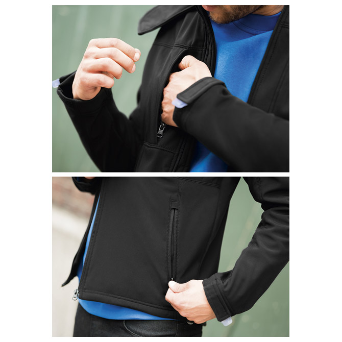muška; na zip; povišen ovratnik sa zaštitom za bradu; kapuljača se može skinuti (može se podesiti elastičnom vezicom); duža leđa; 3 džepa s vanjske strane (2 dolje na zip i 1 gore); vodootporna, otporna na vjetar, termoizolirana, odbija vodu i prozračna; sirovinski sastav: vanjska strana 94% poliester i 6% elastin i unutrašnja strana 100% poliester mikro flis; podesiva elastična vezica na porubu sa stoperima; učvršćivanje na rukavima sa Velcro® čičkom; lak pristup za tisak ili vez (zip s prednje strane)