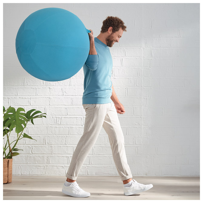 potiče pokrete mišića leđa, poboljšava držanje i ublažava bolove u leđima; idealno za korištenje kao dodatna radna stolica koja vas održava aktivnim dok radite; koristi se za vježbe kao što su: joga, vježbe s loptom za teretanu, vježbe za ravnotežu, istezanje leđa, fizioterapija i vježbe trbušnjaka; brzo i jednostavano za napuhavanje; dolazi s ručnom pumpom i 2 čepa; ima snažnu i izdržljivu ručku za lako prenošenje iz sobe u sobu; sa svojim minimalističkim dizajnom i mat završnim bojama, ova elegantna lopta za sjedenje poboljšat će zdravlje i dobrobit stvarajući savršenu aktivnu radnu atmosferu; navlaka se može ukloniti i prati ručno radi higijene; proizvodi Leitz Ergo Cozy nagrađeni su prestižnom njemačkom nagradom za dizajn 2022. godine; u pakiranju bez plastike; s robusnom unutarnjom kuglom bez ftalata, može izdržati do 100 kg; fi: 65 cm; težina: 1,92 kg