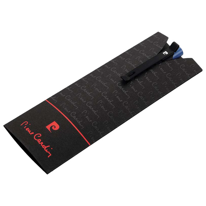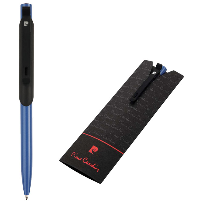 metalna; sa nekonvencionalnim tehničkim dizajnom i crnim gumiranim dodatkom; širina ispisa 1 mm; boja tinte: plava; pakirana je u luksuznu Pierre Cardin džepnu futrolu i dolazi s certifikatom autentičnosti