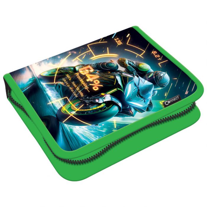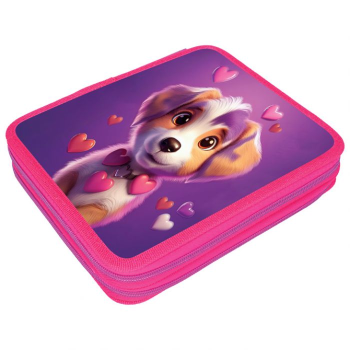 sadrži: pero, olovka, sedam flomastera, devet bojica, gumica, ravnalo, šiljilo, trokut, raspored sati; dimenzija: 19,5x13,3x3,5 cm