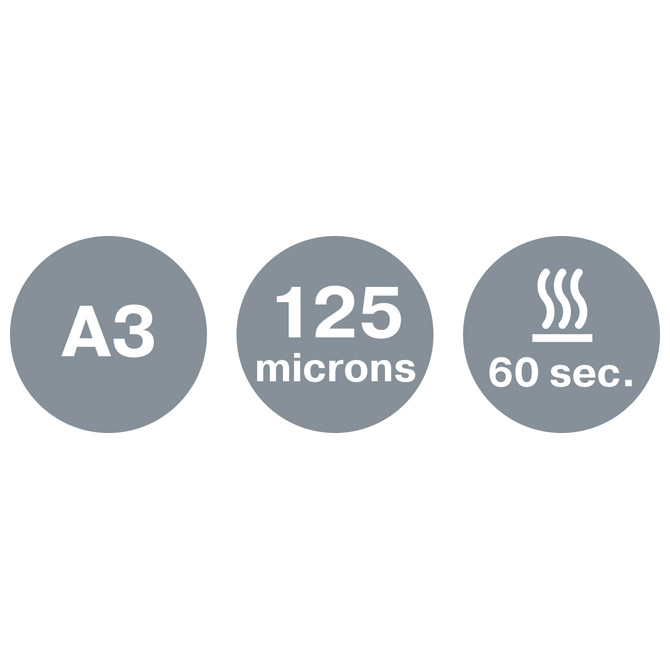 plastificira dokumente do A3 formata (maksimalna širina 320 mm); sadrži: 2 valjka; folija: 75 i 125 mikrona; vrijeme zagrijavanja 1 minuta; za toplu plastifikaciju; plastificira i fotografije; plastificira 1 A4 dokument za 45 sekundi (80 mikrona); polugica za oslobađanje zaglavljenog priloga; LED svjetlosni i zvučni signal ukazuje na spremnost za rad; automatsko gašenje plastifikatora nakon 30 minuta neaktivnosti radi uštede energije; dimenzija: 470x125x75 mm; težina: 1,74 kg; pakiranje uključuje i 10-ak folija za plastificiranje; 2 godine garancije