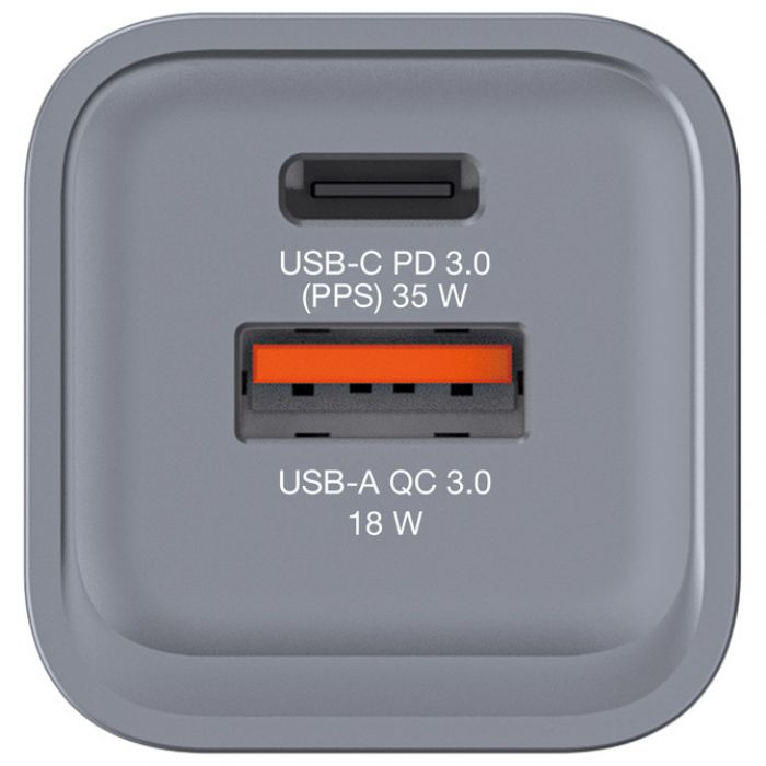 za mobitele i tablete GaN; podržava punjenje do 2 uređaja istovremeno s maksimalnom ukupnom izlaznom snagom od 35 W; opremljen s 1 x USB-C® PD 3.0 do 35 W i 1 x USB-A QC 3.0 do 18 W; integrirana GaN tehnologija omogućuje učinkovito punjenje i stvara manje topline; izvrstan suputnik zahvaljujući sklopivim američkim zupcima, zamjenjivim EU i UK utikačima i tankom, kompaktnom dizajnu; podržava superbrzo punjenje s USB Power Delivery 3.0, PPS i Quick Charge 3.0; tehnologija programabilnog napajanja (PPS) pruža pravu količinu energije potrebne za idealno punjenje; izrađen od visokokvalitetnih materijala otpornih na vatru i ima četiri sigurnosna zaštitna sustava, uključujući zaštitu od prekomjerne struje, zaštitu od prenapona, zaštitu od kratkog spoja i zaštitu od previsoke temperature; pakiranje bez plastike; 2-godišnje ograničeno jamstvo