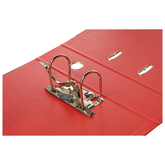 format: A4; kapacitet: 500 listova 80 gramskog papira; hrbat s džepom i etiketom; presvučen PP folijom obostrano; metalna šina na donjim rubovima, bočno zatvaranje i rupa za prst na hrptu za jednostavno rukovanje i sigurno skladištenje dokumenata; patentirani mehanizam s izvanrednom silom za dosljedno precizno zatvaranje; zajamčeno pouzdano zatvaranje čak i nakon 10 000 korištenja (3 godine garanicije na mehanizam); FSC certifikat