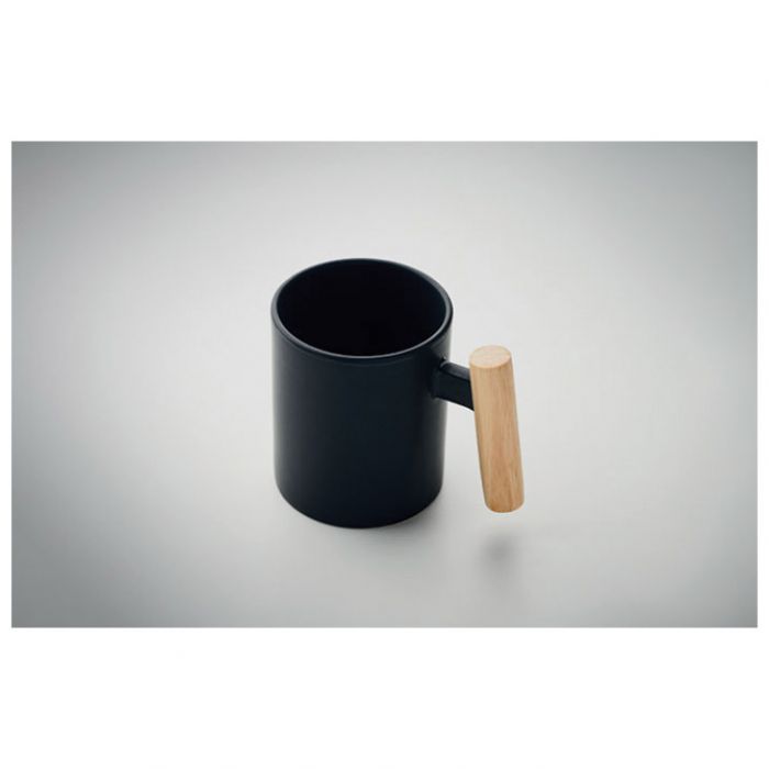 ŠALICA KERAMIČKA 320ML CRENATE SA DRVENOM DRŠKOM CRNA