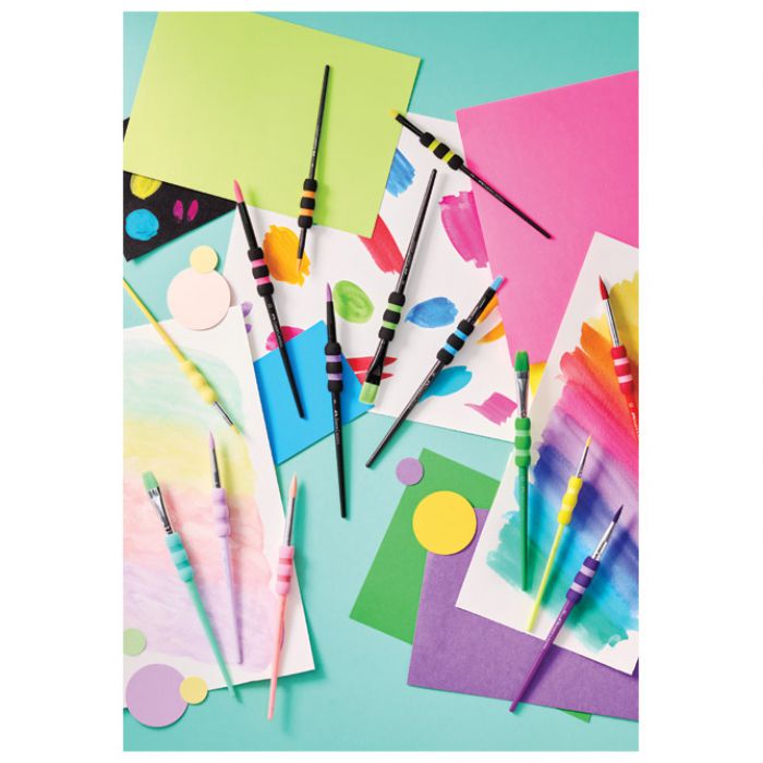 mekani ergonomski grip od pjene; sintetička (umjetna) vlakna otporna na savijanje;okrugli i ravni kistevi; set od 6 komada; blister