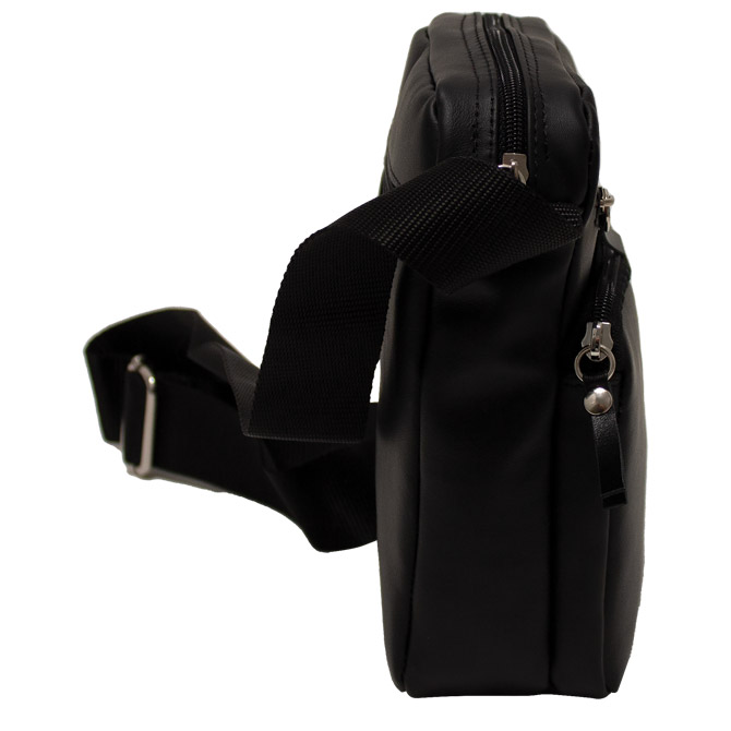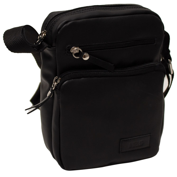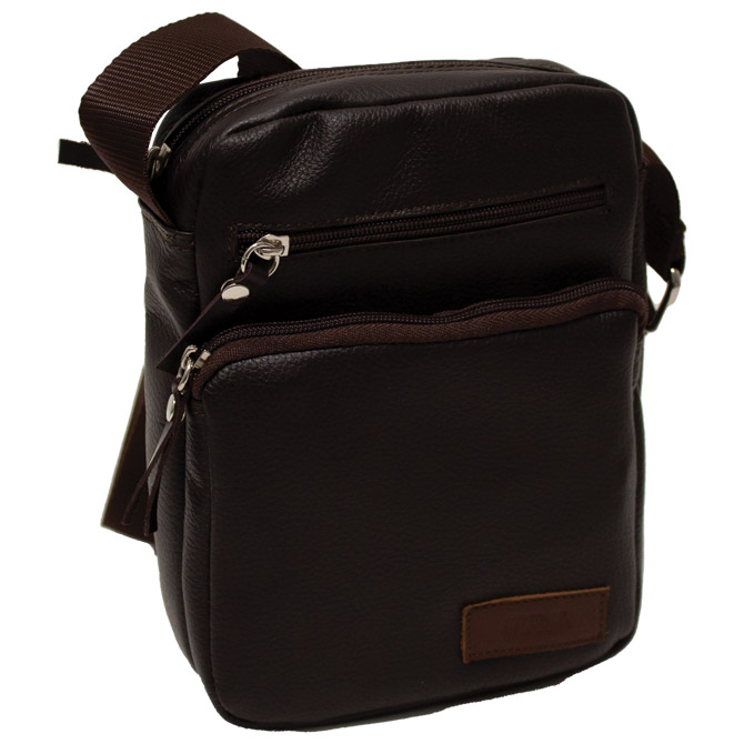kožna; muška; ima: glavni odjeljak sa zatvaranjem na zip, s vanjske strane 1 džep sa zatvaranjem na zip, a s druge strane 2 džepa sa zatvaranjem na zip; podesivi remen za nošenje na ramenu (ne može se skinuti); dimenzija: 16,5x22,5x5,5 cm; 3 boje: crna, smeđa i tamno smeđa