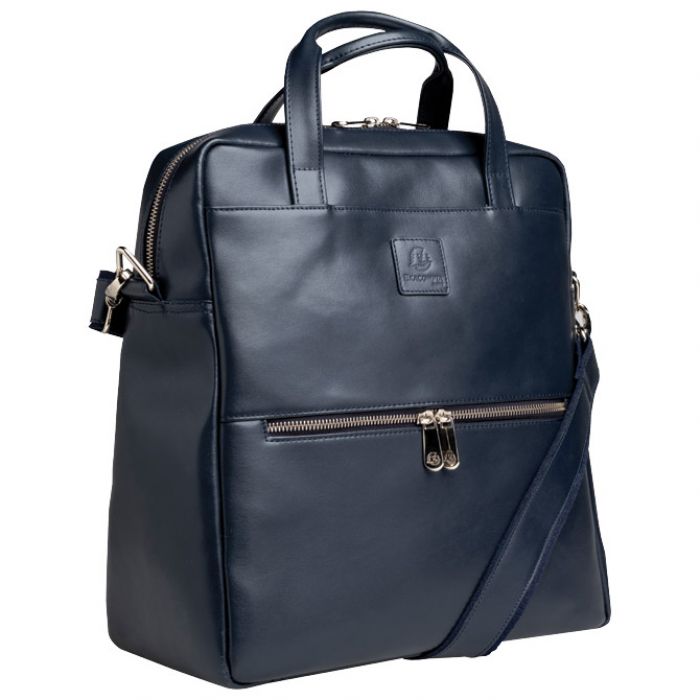 kožna; muška; ima glavni odjeljak sa zatvaranjem na kopču, pretinac za kartice, mobilni telefon, olovke…; dimenzija: 41x31x11 cm