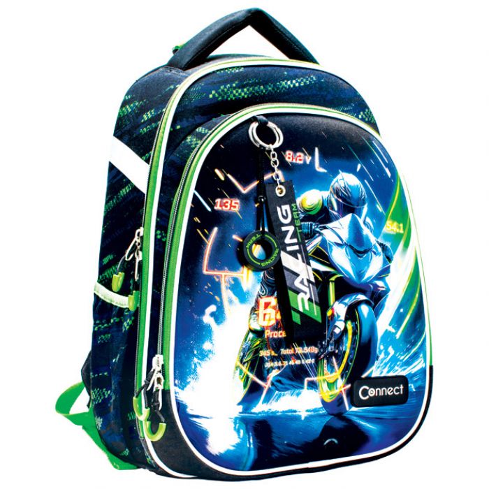 dimenzija: 37x31x22 cm; težina: 900 g; kapacitet: 15 l; ergonomski oblikovan leđni dio omogućava protok zraka; podesive naramenice; kopča na klik; 3M reflektirajuće trake; vodootporni materijal; veliki unutarnji pretinac sa posebnim pretincem za knjige; 1 prednji džep i 2 džepa sa strane