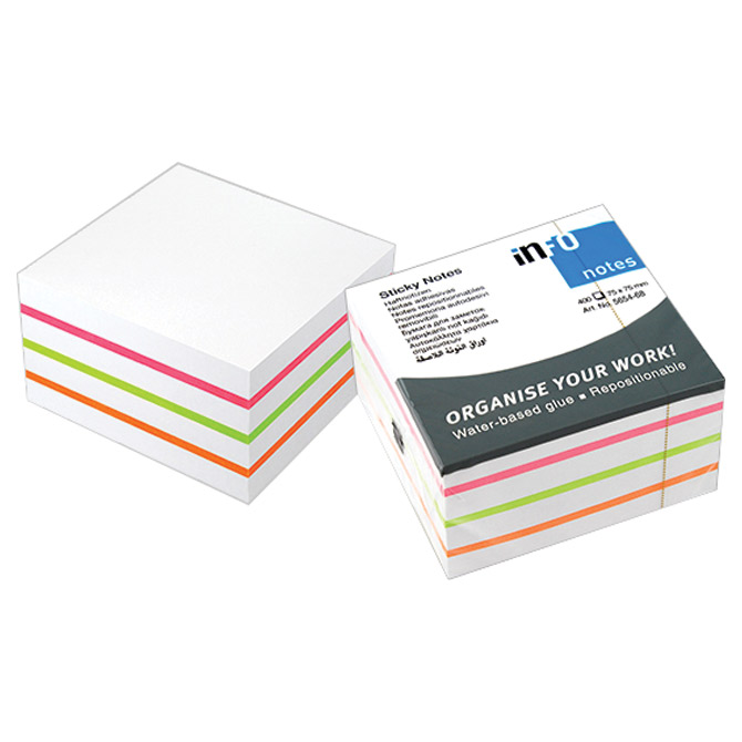 Blok samolepilni kocka 75x75mm 450l global notes 5654-68 sortirano