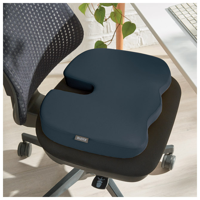 popolna blazina za sedež, ki pomaga ustvariti udobno in aktivno delovno okolje s katerim koli stolom; zasnovana za spodbujanje zdrave drže, izboljšanje cirkulacije in zmanjšanje pritiska na hrbtenico, bo pomembno zmanjšala nelagodje, utrujenost in togost, ki so lahko posledica dolgotrajnega sedenja ali zdravstvenih stanj, kot je išias; idealna za uporabo doma, v pisarni ali celo v avtomobilu za maksimalno udobje; s svojim minimalističnim oblikovanjem in mat zaključnimi barvami bo ta stilska ortopedska blazina za sedež izboljšala zdravje in dobro počutje ter brez truda ustvarila popolno aktivno delovno okolje; prevleka je odstranljiva in pralna ročno za higieno; testirano in priporočeno s strani nemškega inštituta IGR za zdravje in ergonomijo, v skladu z DIN 26800 EN ISO 15537; izdelki Leitz Ergo Cozy so bili nagrajeni s prestižno nemško nagrado za oblikovanje leta 2022; pakiranje brez plastike; dimenzije: 455x355x75 mm; teža: 1,16 kg