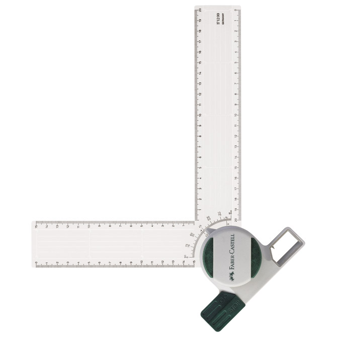 za A3 in A4 risalne deske; vodilo vzdolž vzporednih ravnil; popolnoma izkoriščen desni kot; smernice za senčenje; gumb za zaklepanje; obračanje desnega kota za celih 90 stopinj; dodatek za 15 stopinj; natančna korekcija: 1 stopinja