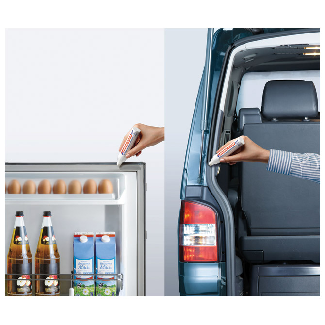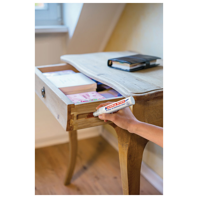 širok lubrikantni označevalec za vzdrževanje gumijastih delov; klinasta konica; širina črte 4-12 mm; očistite gumo pred nanosom silikonskega olja v označevalcu