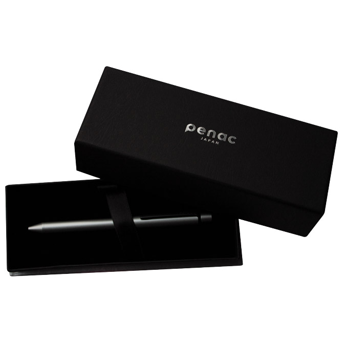 2 kemična svinčnika: 1 rdeče in 1 modro črnilo (mach ink) in tehnični svinčnik (mina 0,5 mm); vrtljivi (twist) mehanizem (360°) v obe smeri; z indikatorjem, katero pisalo je izbrano; kovinsko ohišje pisala; mat črna kovinska sponka in obroč; Mach črnilo se odlikuje po nizki viskoznosti, kar ustvarja občutek lahkega drsenja po papirju; z radirko (brez lateksa in PVC-ja); rezervni vložek D1BR6707 (0,7 mm); v darilni škatli