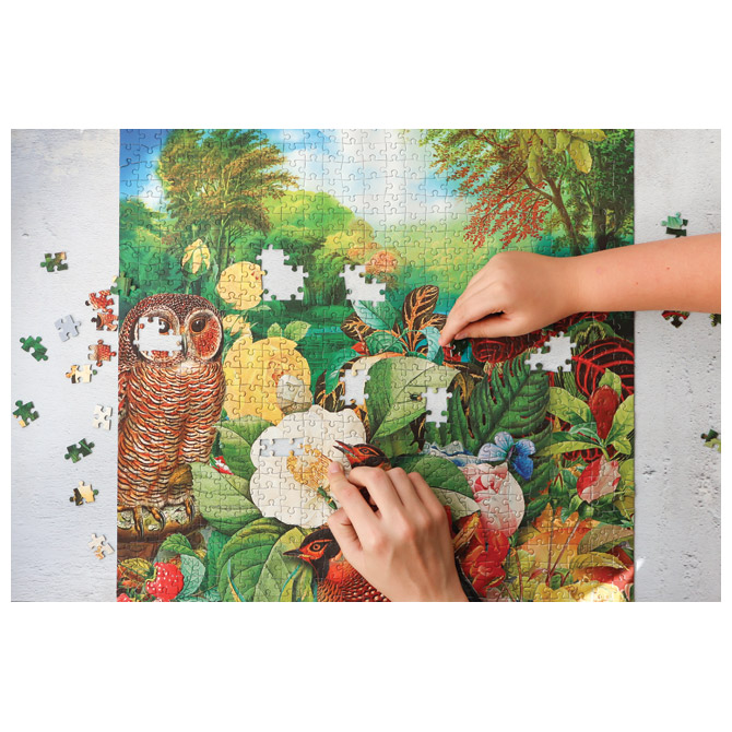 vsebuje 1000 delov; dimenzije slike: 50,7x68,5 cm; vrhunska kakovost izdelave; izdelan iz troslojne trdne modre lepenke; strukturiran premaz; idealno za uokvirjanje in obešanje na steno; v kartonski škatli