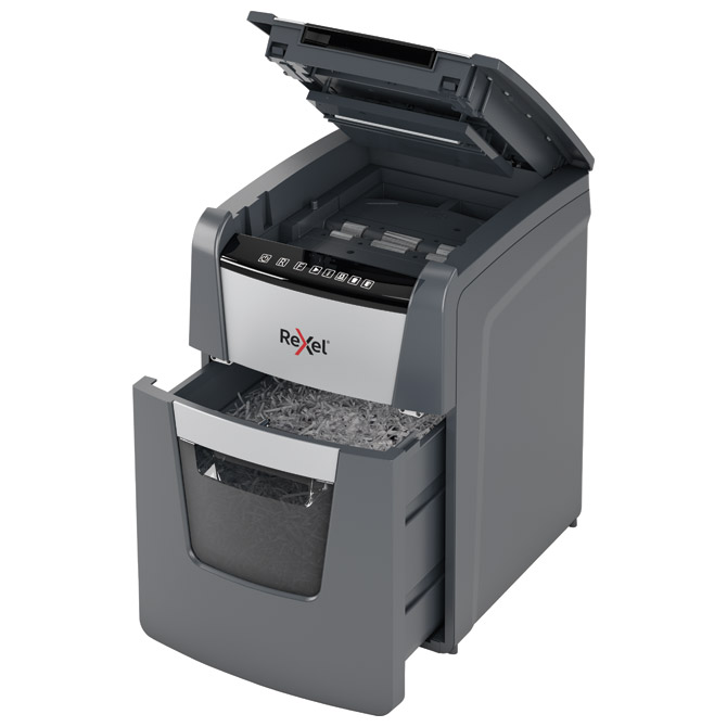 samodejni uničevalci prihranijo 98 % vašega časa v primerjavi z ročnim uničevanjem; samodejna zmogljivost: 90 listov; ročna zmogljivost: 8 listov; zmogljivost koša: 34 litrov; širina vhoda: 220 mm; uničevanje z rezanjem križno (konfeti); širina reza: 4x28 mm; varnostna raven: 4; enostavne in intuitivne tipke na dotik za enostavno upravljanje (nadzorna plošča na dotik); delovni ciklus: 20 minut; po 3 minutah neaktivnosti gre uničevalec v stanje pripravljenosti za varčevanje z energijo; tehnologija proti zagozditev papirja; tip koša: koš je mogoče izvleči za lažje praznjenje; ima okence; infrardeči senzor za poln koš; tiho delovanje uničevalca (55 dBA); poleg papirja uničuje sponke (ročna in strojna) in kreditne kartice; dimenzija: 440x605x500 mm; teža: 12 kg